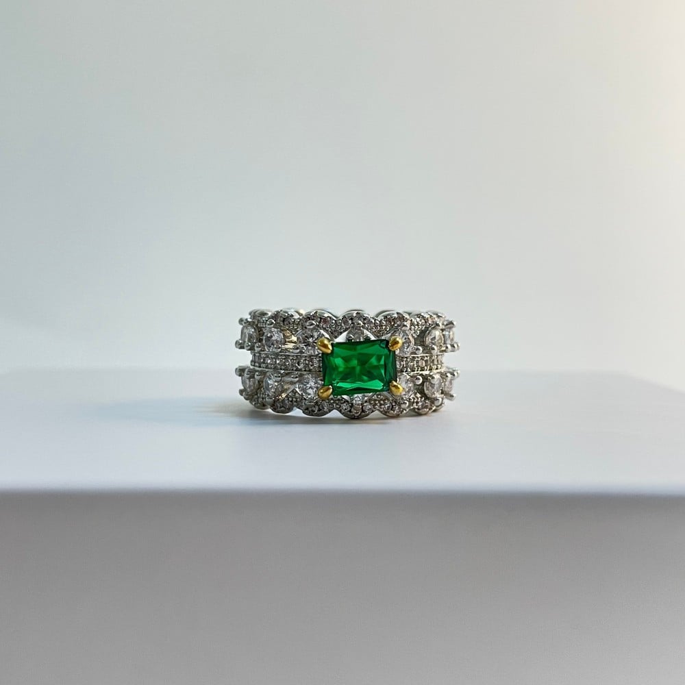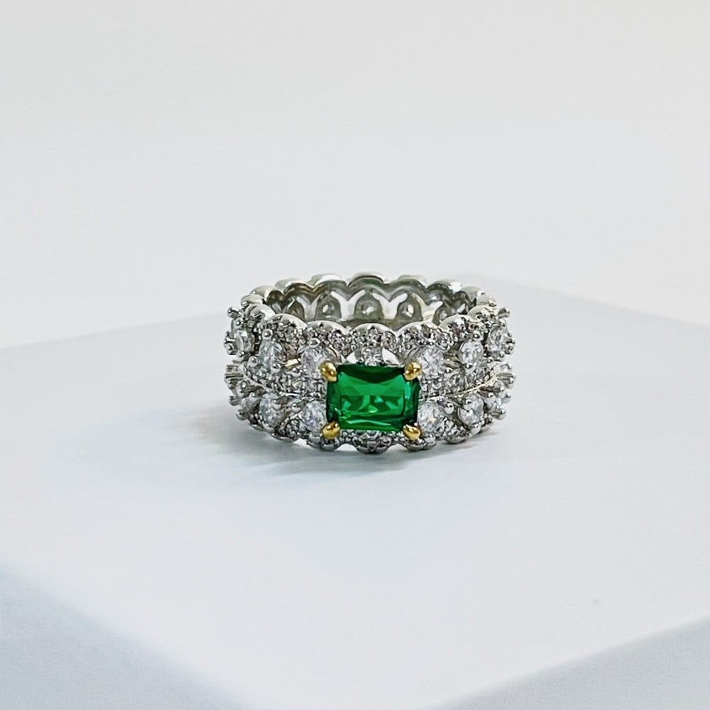 خاتم مميز من النحاس مطلي بالبلاتين مُرصع بفصوص ألماس صناعي ( زركون )خال من مادة الرصاص والنيكل ولا يسبب حساسية