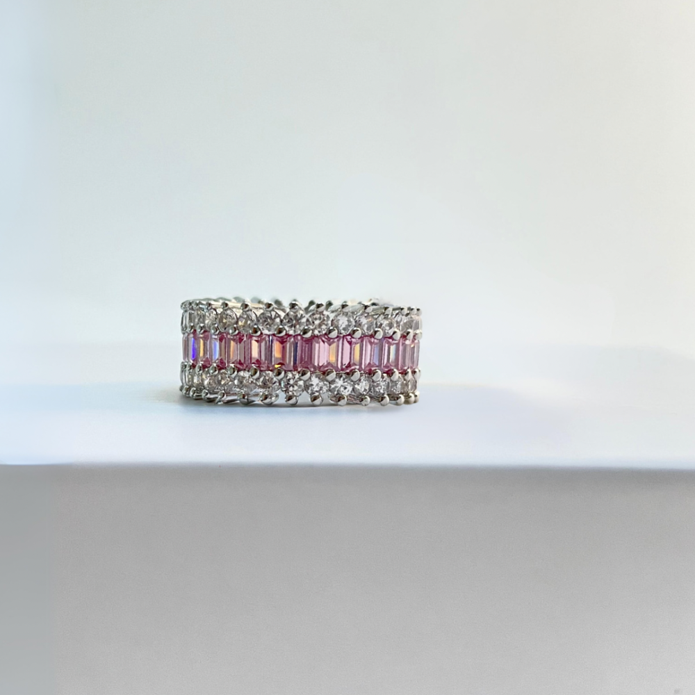 خاتم مميز من النحاس مطلي بالبلاتين مُرصع بفصوص ألماس صناعي ( زركون )خال من مادة الرصاص والنيكل ولا يسبب حساسية